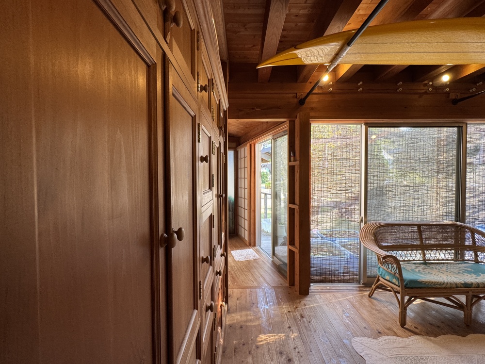 | こだわり項目 | 完全分離型2世帯住宅でございます! 自然豊かで裏の小川には蛍が生息、マリンスポーツ、釣り、キャンプなど 森も海も両方楽しめる住まいです! 1階にはウッドデッキ約9㎡があります! |