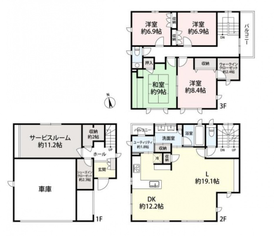 | 設備 | 都市ガス,システムキッチン,カウンターキッチン,浄水器,食器洗浄乾燥機,追焚機能,温水洗浄便座,浴室乾燥機,エアコン,ウォークインクローゼット,シューズインクローゼット,駐車場3台分,モニター付きインターホン,セットバック | ||