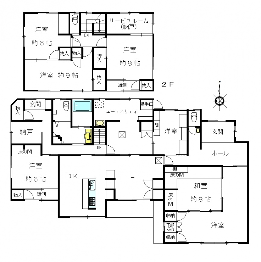 | 間取 | 7SLDK | 建物構造 | 木造 2階建 (木造瓦葺2階建) |
