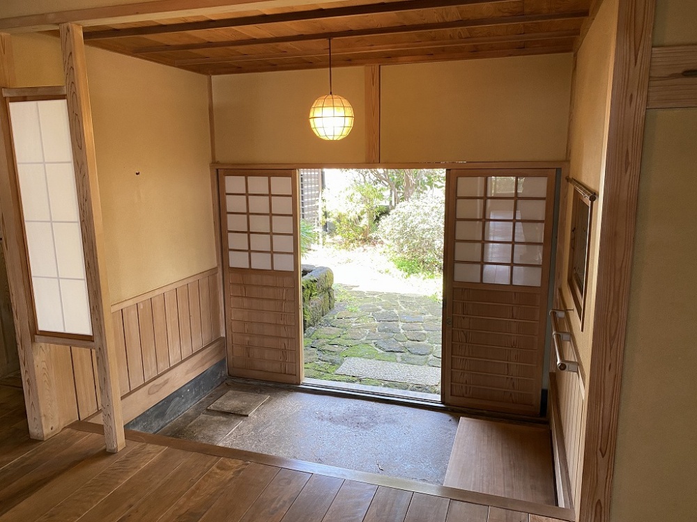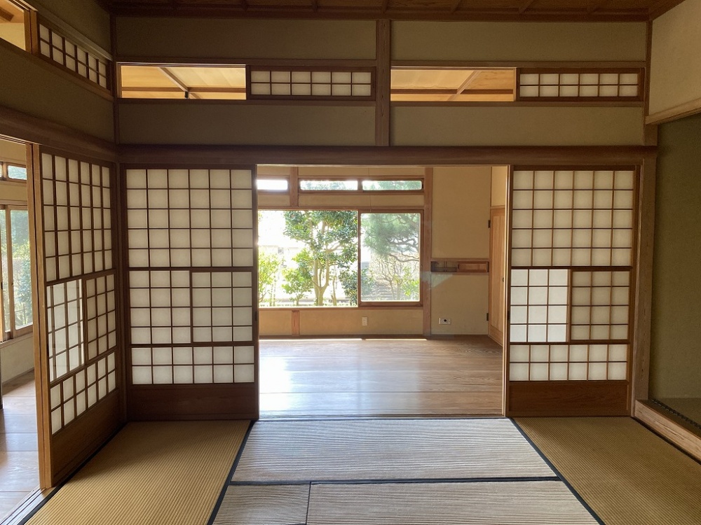 門をくぐれば、玄関から開放的に広がる畳の間と、四季を映す庭園があなたを迎えます。